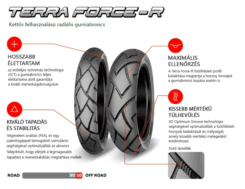 A motorosok kiváló tapadást, könnyű manőverezhetőséget, valamint kiváló stabilitást fognak tapasztalni. A magas szilika tartalomnak köszönhetően nedves felületen is kiválóan megállja a helyét.