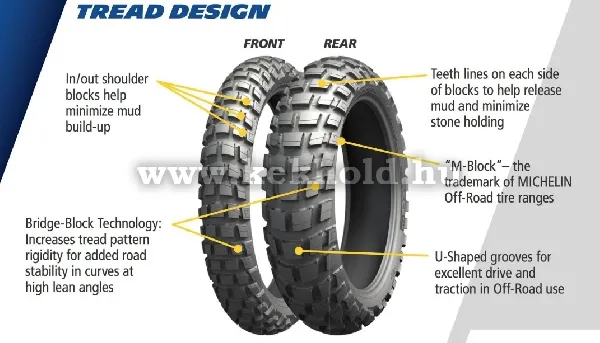 A bütykös, vegyes használatra (50% terep, 50% aszfalt) szánt motorgumik új trónkövetelője. Az enduro on/off szegmensben elsőként radiális szövetszerkezettel fejlesztve. Extrém erős oldalfala kiváló felütés védelmet nyújt, kevésbé defekt esélyes, valamint nem rogyik össze nehezebb endurok alatt sem.