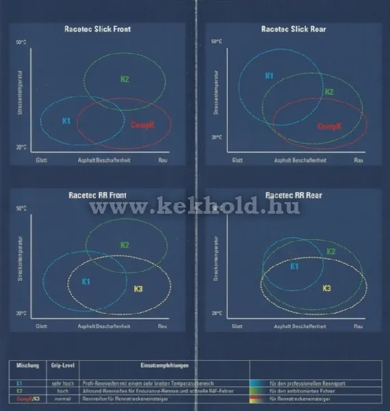 Közútra engedélyezett pályagumi. Váltakozó sűrűségű és előfeszítésű (Interact) 0°-os acélszövet, kétkomponensű hátsó futófelület. Tartós, rendkívül sokoldalú. Változatos aszfalt típusokon és szélsőséges hőmérséklet ingadozások esetén is megállja a helyét. K1=Soft, K2=Medium, K3=Hard keverék